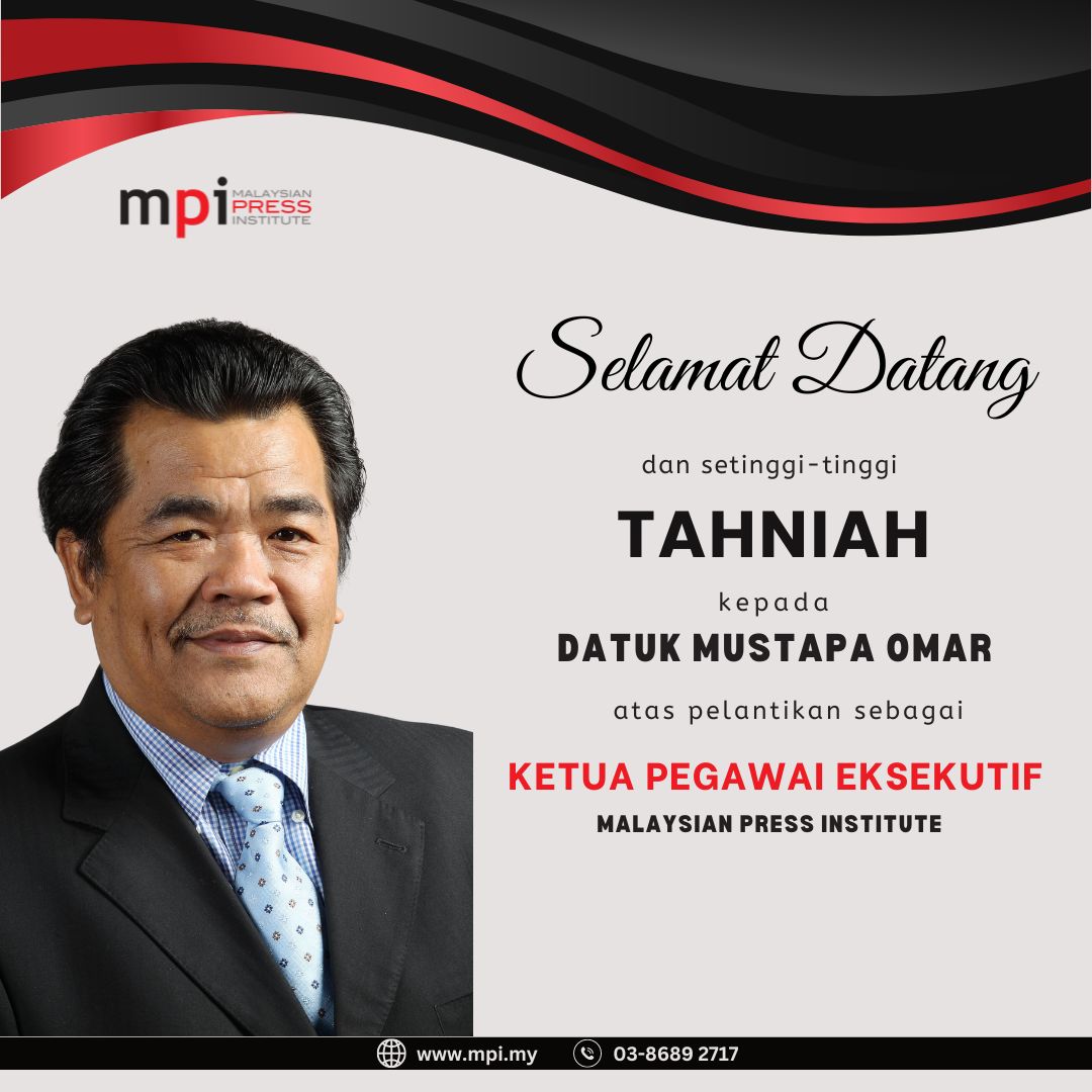 Malaysian Press Institute (MPI) mengumumkan pelantikan YBhg Datuk Mustapa Omar sebagai Ketua Pegawai Eksekutif berkuatkuasa 1 September 2023. Pelantikan beliau dibuat bagi menggantikan tempoh perkhidmatan YBhg Datuk Dr. Chamil Wariya yang berakhir pada 30 Jun 2023.