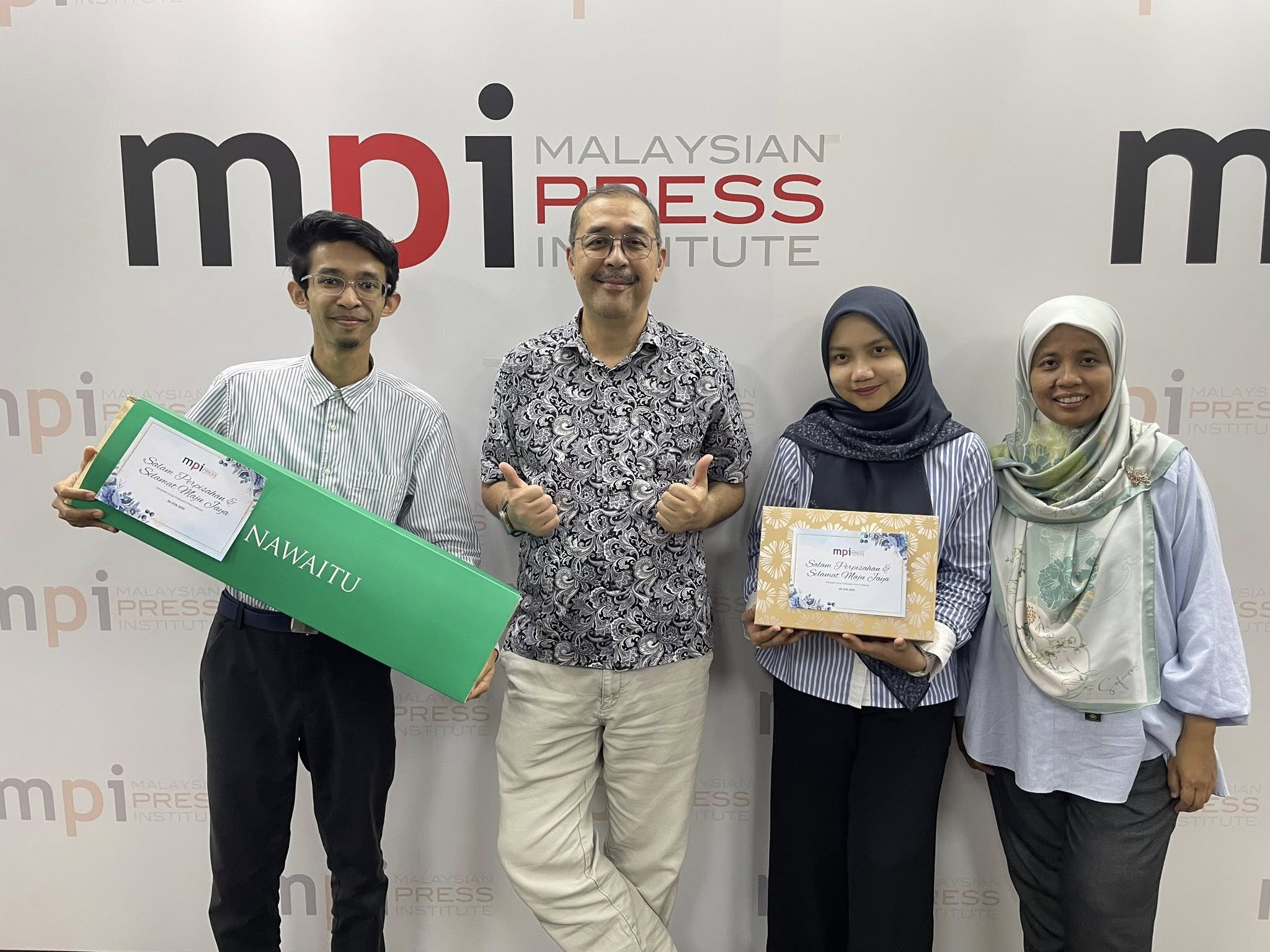 CYBERJAYA, 30 Jun — Malaysian Press Institute (MPI) mengadakan satu majlis perpisahan sederhana tetapi penuh makna bagi meraikan perkhidmatan dan sumbangan kakitangannya, Nurul Azira Tajuddin (Eksekutif Pengurusan), serta pelajar latihan industri, Muhamad Faris Faisal, dalam satu sesi makan tengah hari di Cyberjaya, hari ini.