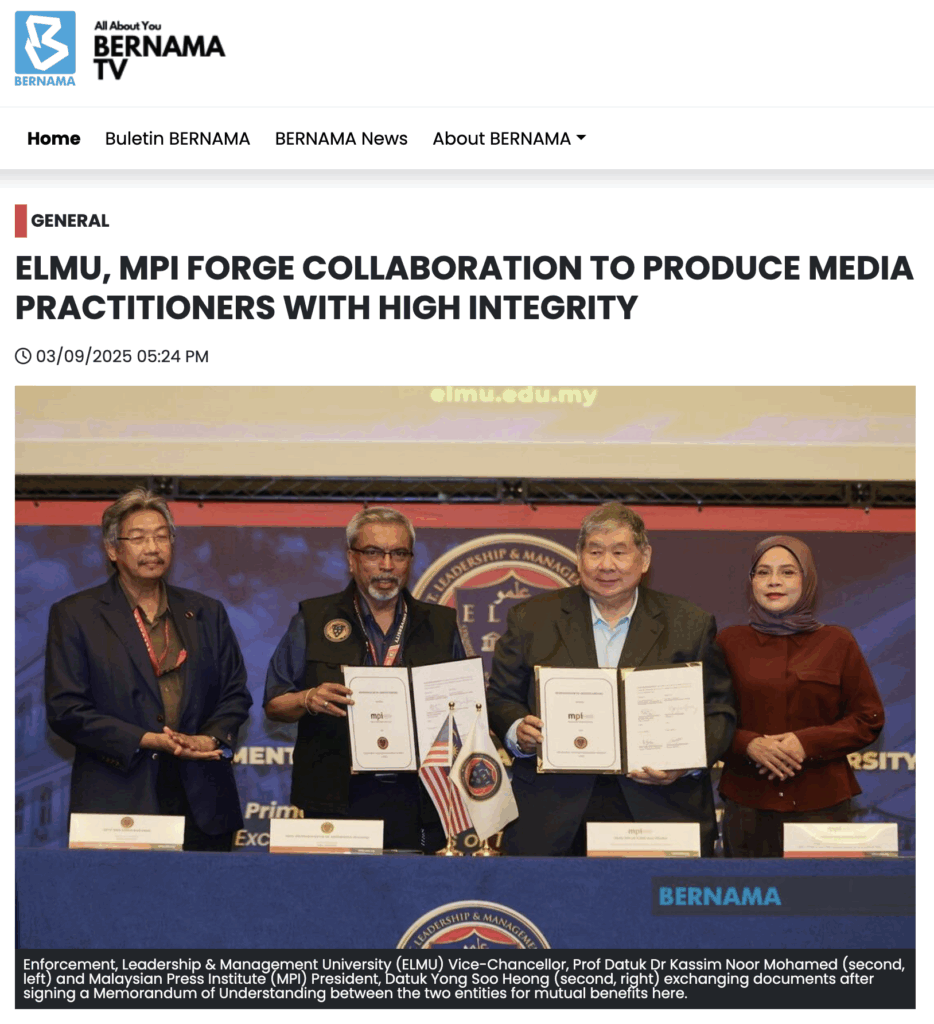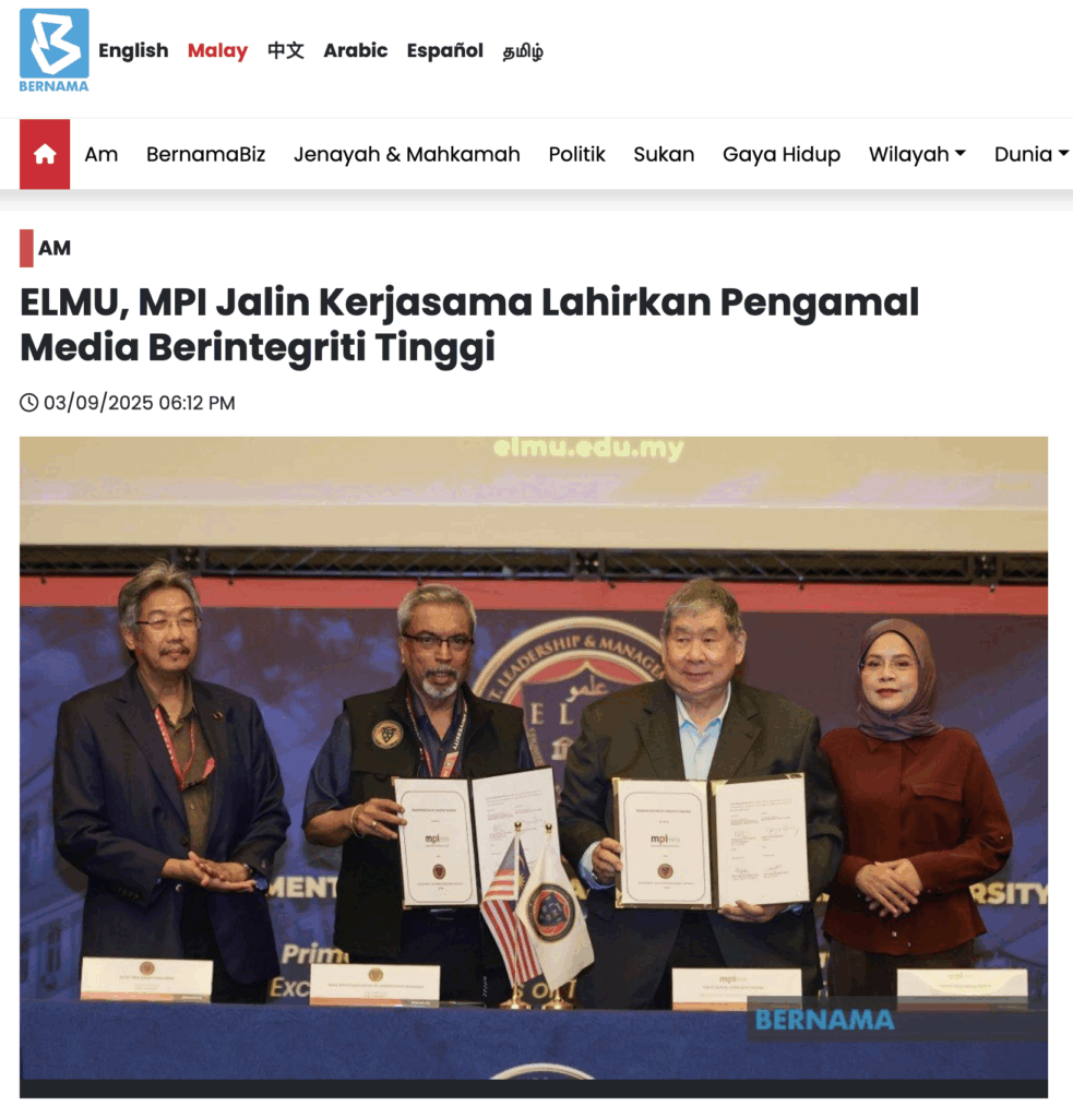 Rangkuman Liputan Media Majlis Perjanjian Memorandum Persefahaman (MoU) MPI – ELMU