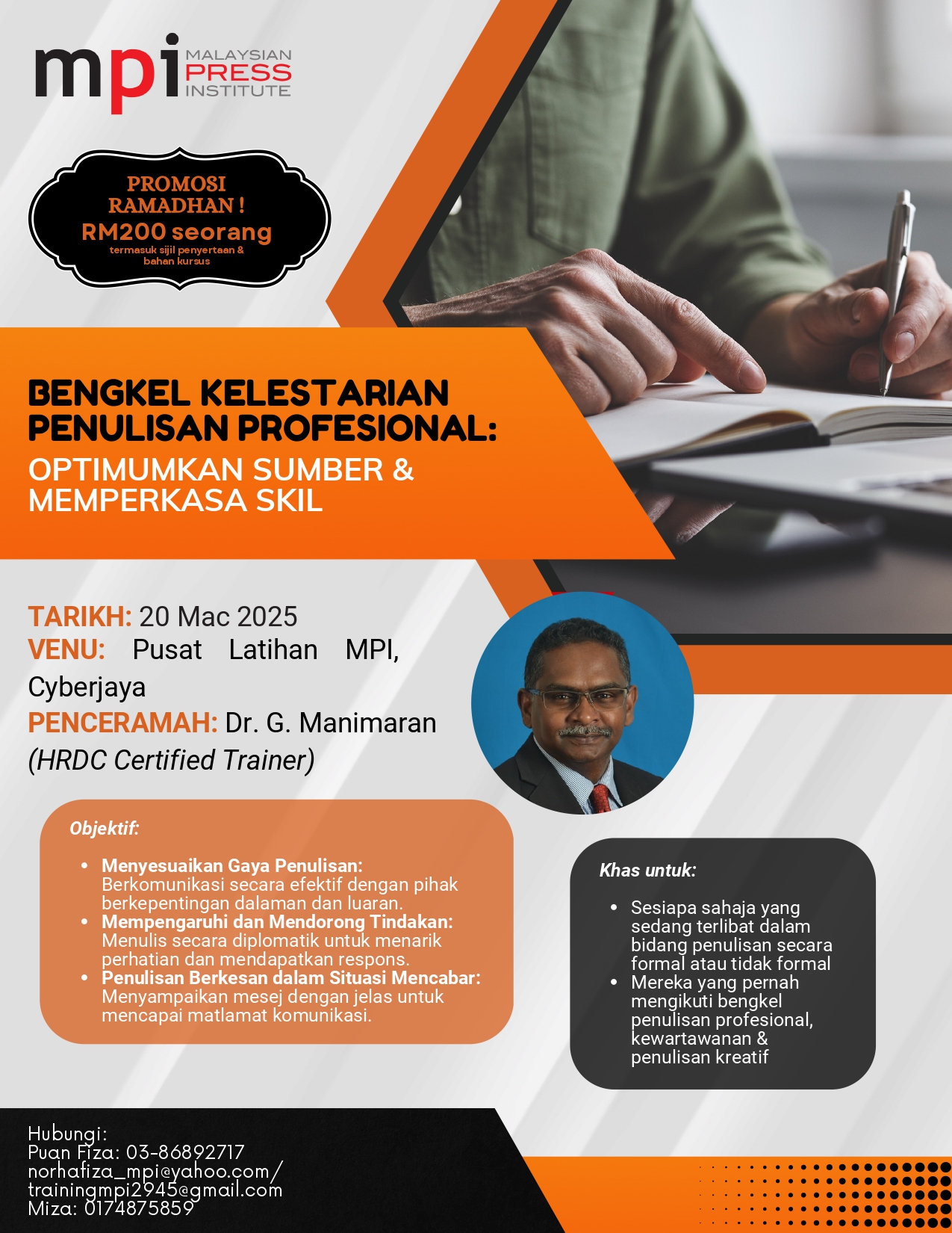 Ingin meningkatkan kemahiran penulisan dan berkomunikasi dengan lebih efektif? Sertai Bengkel Kelestarian Penulisan Profesional untuk: