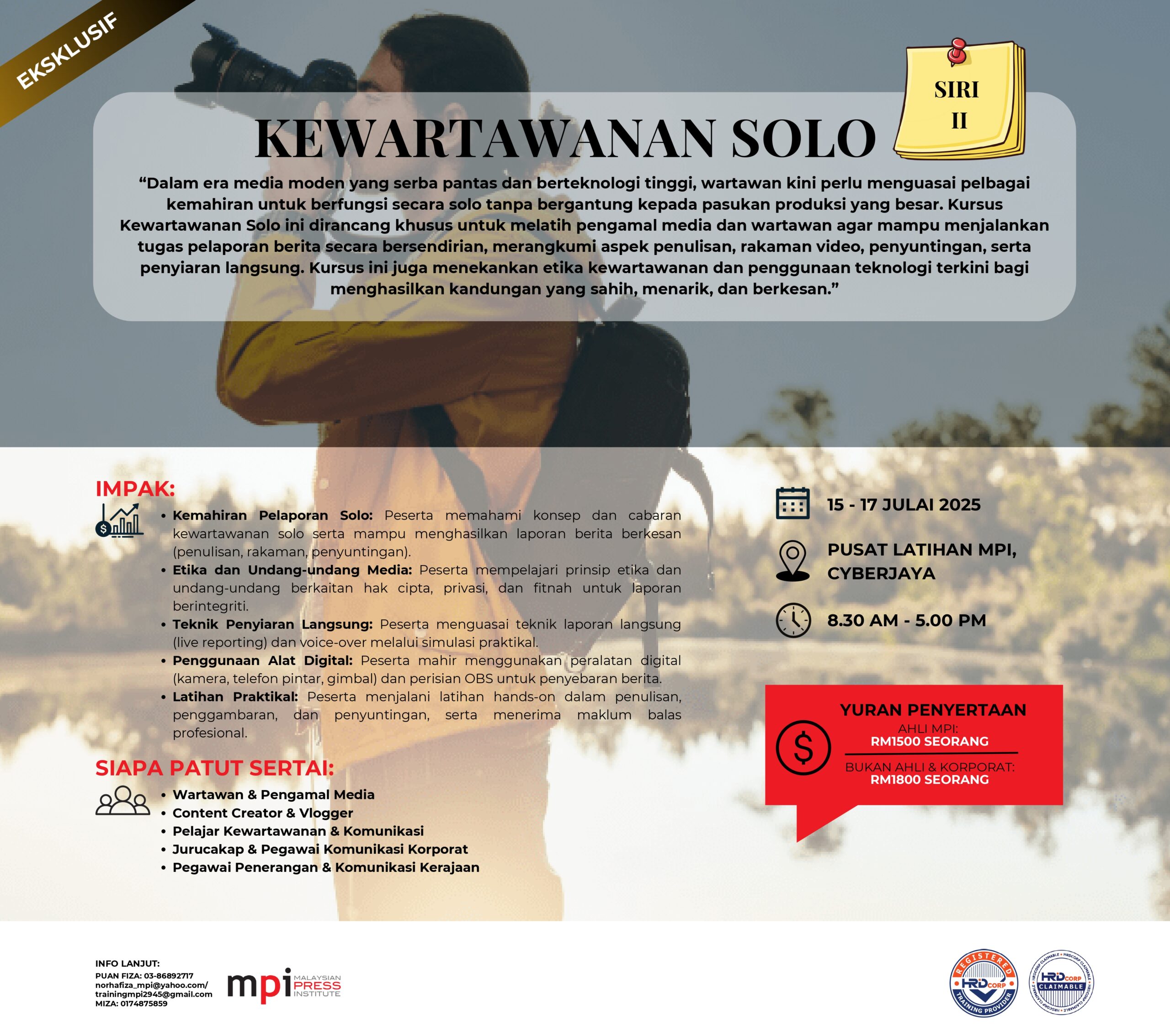 Kembali atas permintaan ramai – KEWARTAWANAN SOLO SIRI 2 kini dibuka untuk penyertaan!