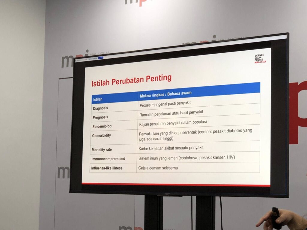 Cyberjaya, 29 April 2025 – Kursus Istilah Baharu Kewartawanan hari ini diteruskan dengan sesi khas bersama Co-founder Science Media Centre (SMC) Malaysia, Cik Tan Su Lin, yang membincangkan penggunaan istilah dalam pelaporan berita berkaitan perubatan dan kesihatan.