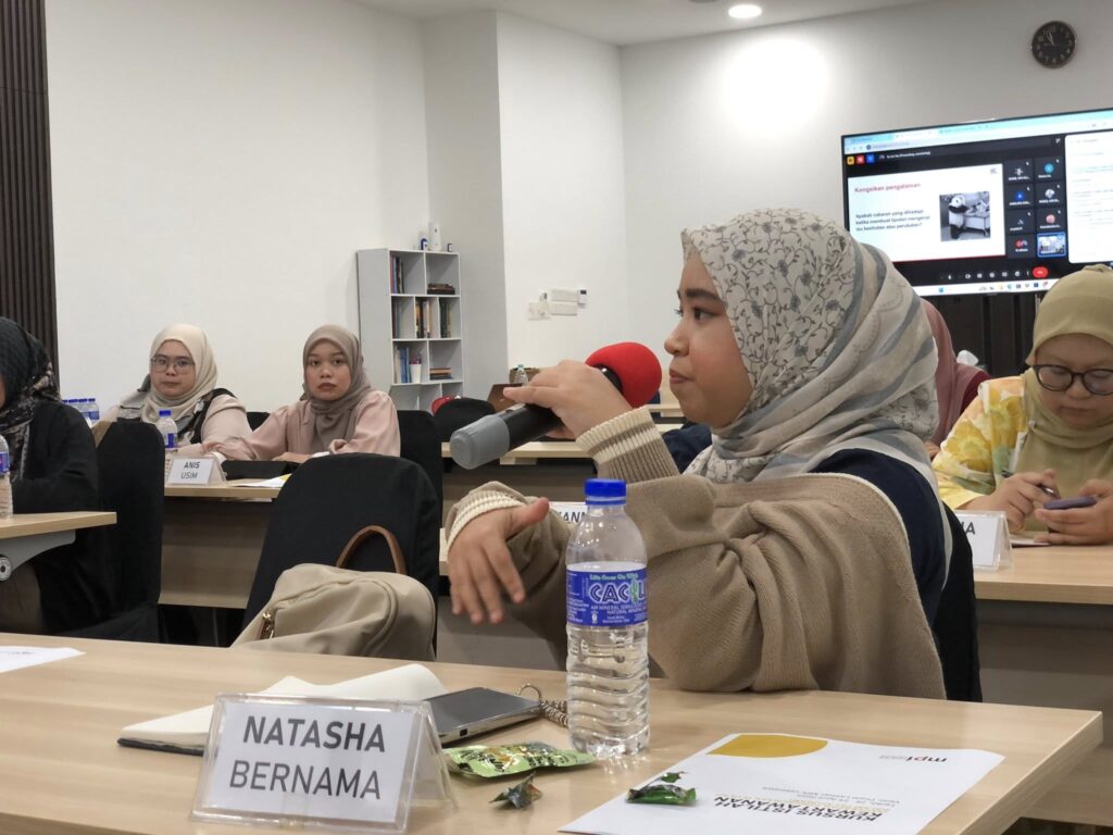 Sesi ini turut disertakan dengan latihan praktikal, di mana para peserta berpeluang menganalisis kenyataan akhbar rasmi berkaitan isu kesihatan, seterusnya menghasilkan laporan berdasarkan data dan maklumat sebenar.