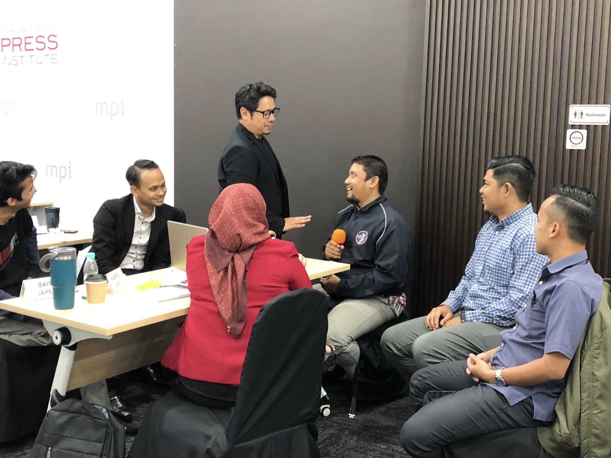 Cyberjaya, 22 Julai 2025 – Hari kedua Kursus Pengurusan Video & Audio Podcast anjuran Malaysian Press Institute (MPI) diteruskan dengan sesi bersama penceramah jemputan, Encik Ally Iskandar, yang berkongsi kemahiran asas dalam pengendalian podcast berbentuk temu bual, termasuk teknik menyoal, mendengar, dan mengemudi perbualan secara berkesan.