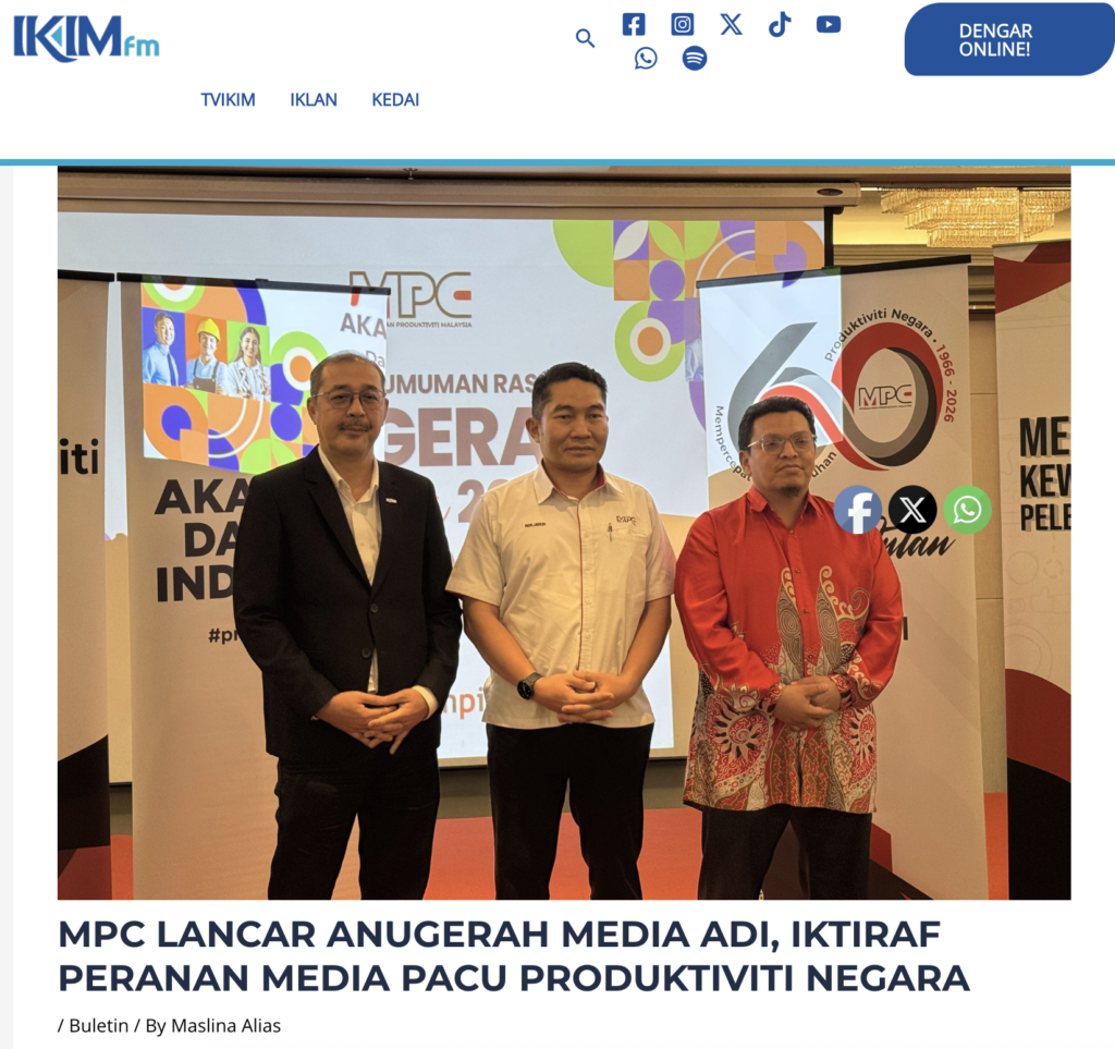 IKIMfm: MPC Lancar Anugerah Media ADI, Iktiraf Peranan Media Pacu Produktiviti Negara