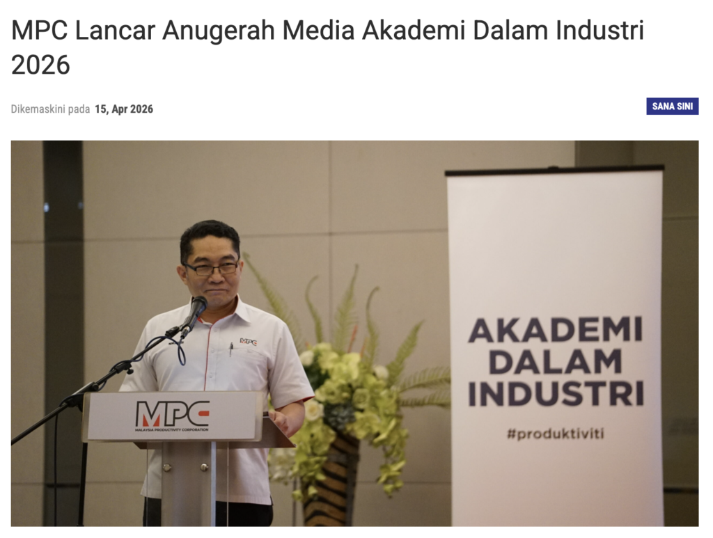 15 APR : Perbadanan Produktiviti Malaysia (MPC) hari ini melancarkan Anugerah Media Akademi Dalam Industri (ADI) 2026.