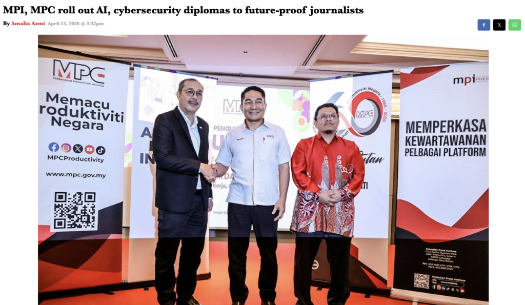 New Straits Times: MPI, MPC Roll Out AI, Cybersecurity Diplomas To Future-proof Journalists