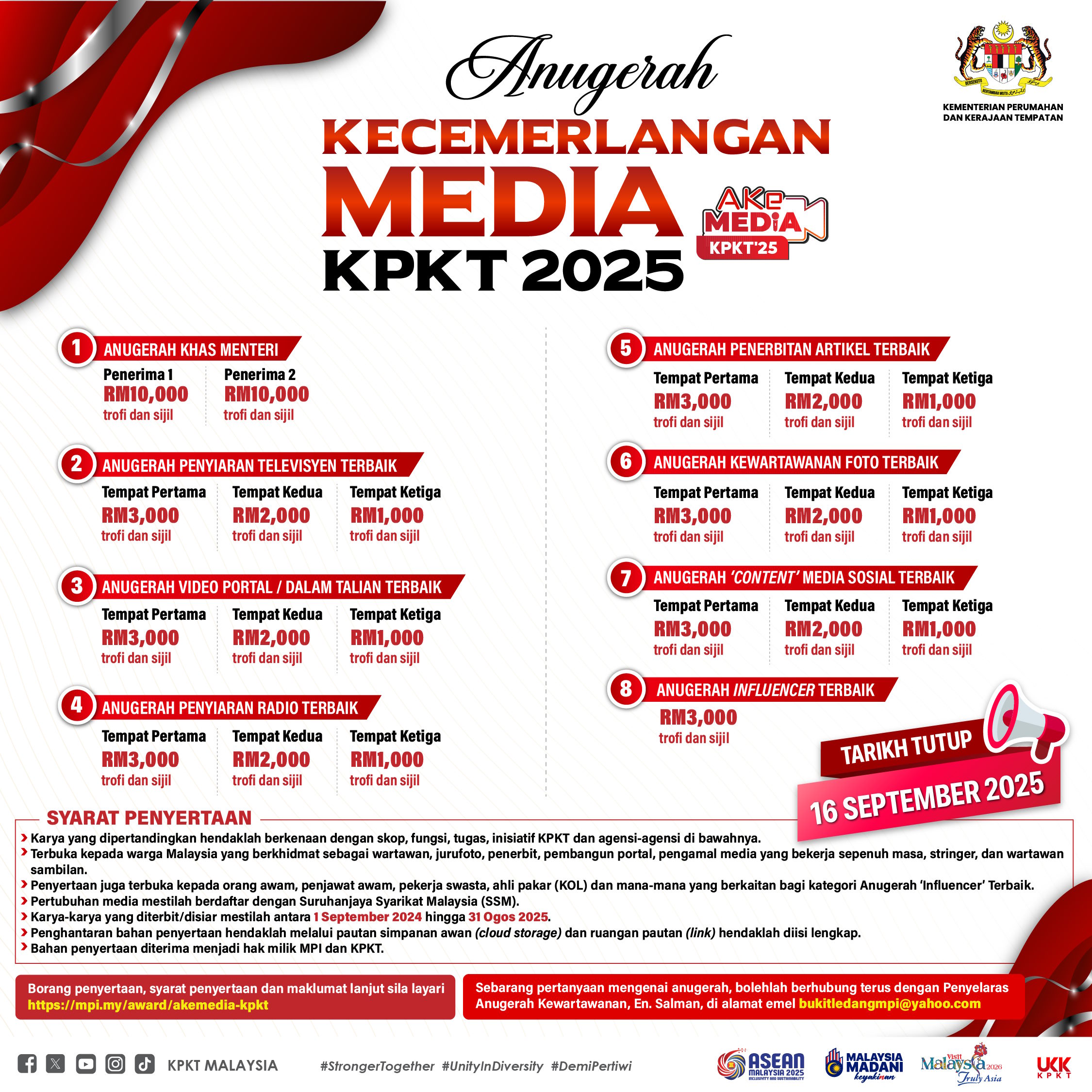 Anugerah Kecemerlangan Media KPKT (AKeMEDIA KPKT) kini kembali dengan edisi tahun 2025. Kementerian Perumahan Dan Kerajaan Tempatan (KPKT) berterusan menganjur anugerah buat kali ketiga sebagai usaha pengiktirafan kewartawanan negara dalam membentuk pembangunan & perumahan negara.