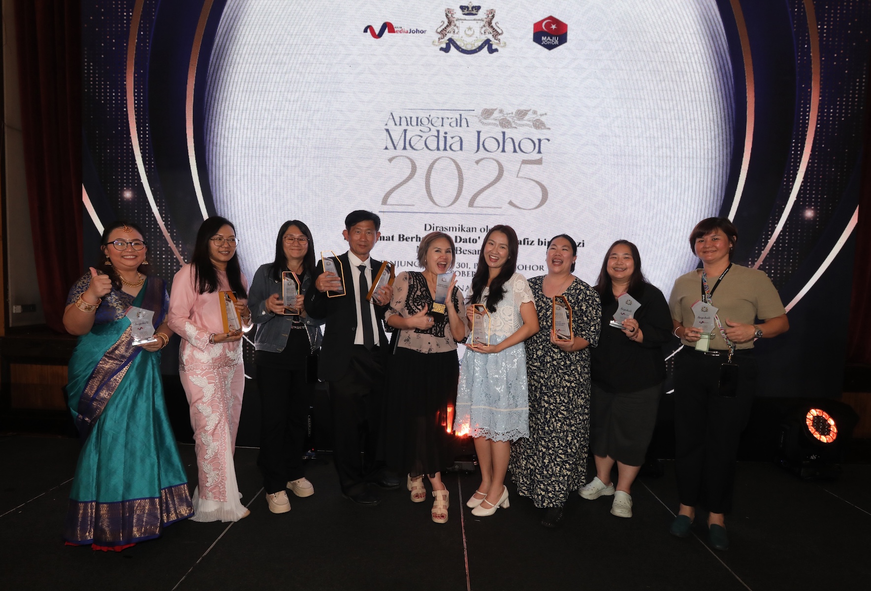 JOHOR BAHRU, 17 Oktober – Malam kemuncak Anugerah Media Johor 2025 yang berlangsung dengan penuh gemilang di Persada Johor, Johor Bahru pada 15 Oktober lalu menyaksikan wartawan Siow Jing En daripada akhbar Sin Chew Daily dinobatkan penerima Anugerah Perdana Menteri Besar Johor.